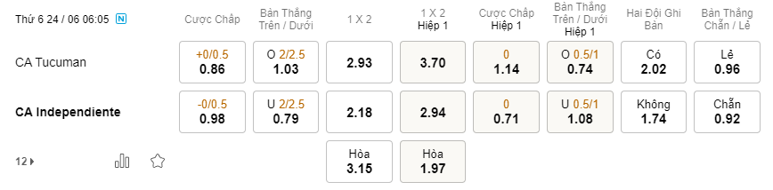 Soi kèo hiệp 1 Atletico Tucuman vs Independiente: 1.14*0*0.71