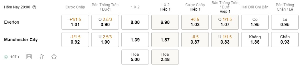 Soi kèo châu Á Everton vs Man City: 1.01*1/1.5*0.92