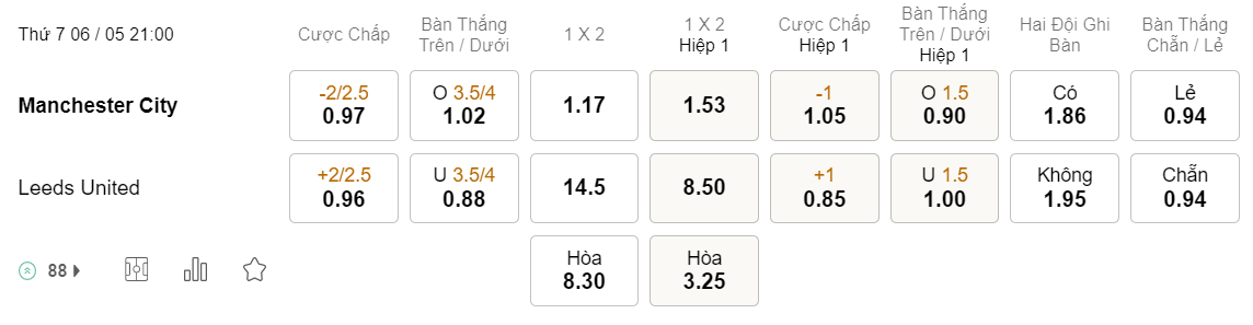 Tỉ lệ kèo Man City vs Leeds