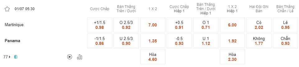 Tỉ lệ kèo Martinique vs Panama