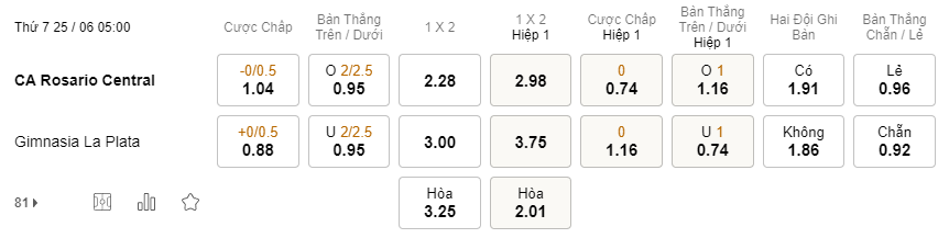 Trong khi đó nhìn sang đội chủ nhà, họ đang thi đấu không thực sự ổn định trong thời gian gần đây, khi mà Rosario Central đã thua tới 2 trong 3 trận gần nhất. Vì vậy các chuyên gia nhận định, lựa chọn Gimnasia trong trận đấu này sẽ là chính xác hơn.